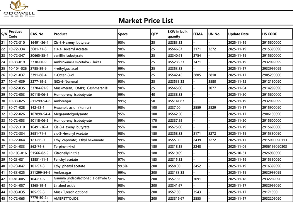 Cenník trhu Odowell-2025.10.25-2025.11.25